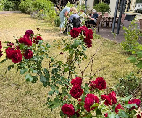 Das Seniorenhaus Waldfriede hat eine schön gestaltete Außenanlage, mit befestigten Wegen lädt er die Bewohner zu Spaziergängen im über 5000 qm großen Garten ein. Aufgestellte Sitzmöglichkeiten ermöglichen Entspannung an frischer Luft und in freier Natur. Gut erreichbare Hochbeete laden zum Gärtnern und Naschen ein.